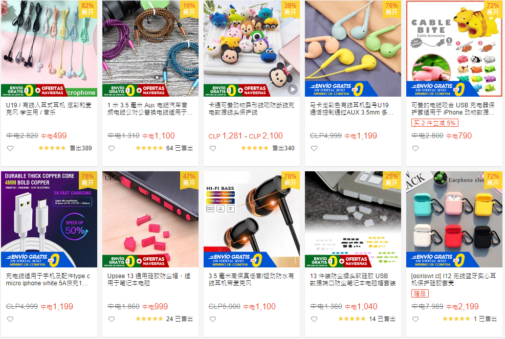 ● 热销:蓝牙耳机、数据线保护头、有线耳机、耳机壳、LED手表、触控笔
