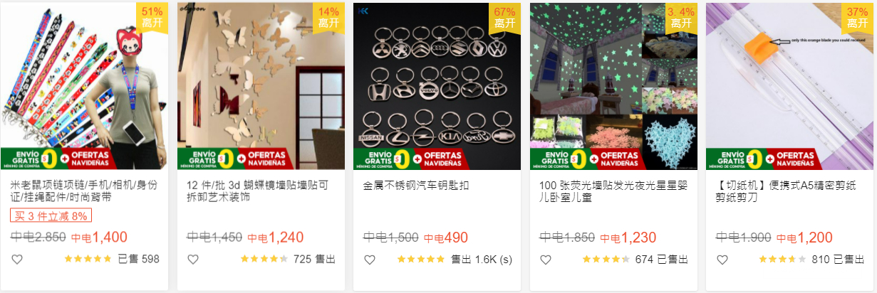● 热销:内衣裤、发夹、发带、LED手表、戒指、墨镜、项链、短袜