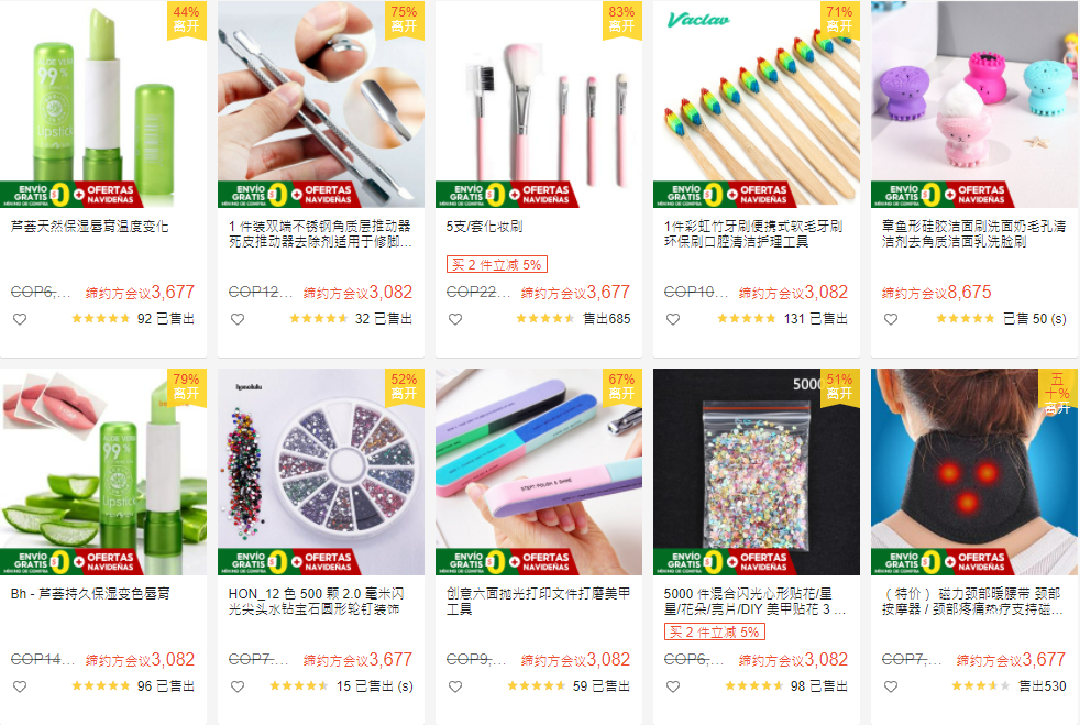 ●热销:润唇膏、牙刷、洁面刷、颈部按摩器、美甲工具/装饰、解压玩具、减肥贴、假睫毛、睫毛夹