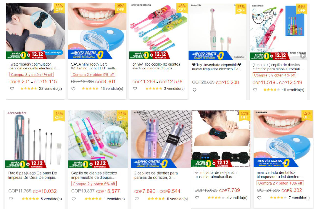 热销品:电动牙刷、水牙线、电疗按摩器、面部按摩滚轮