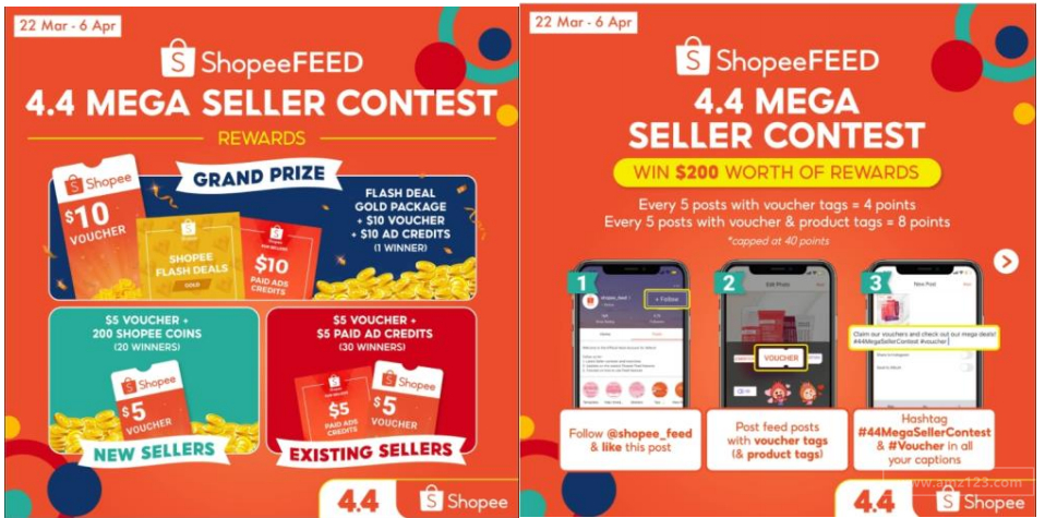 3. 开始推送并在 FEED 里使用 #44MegaSellerContest 以及 #Voucher 两个话题标签