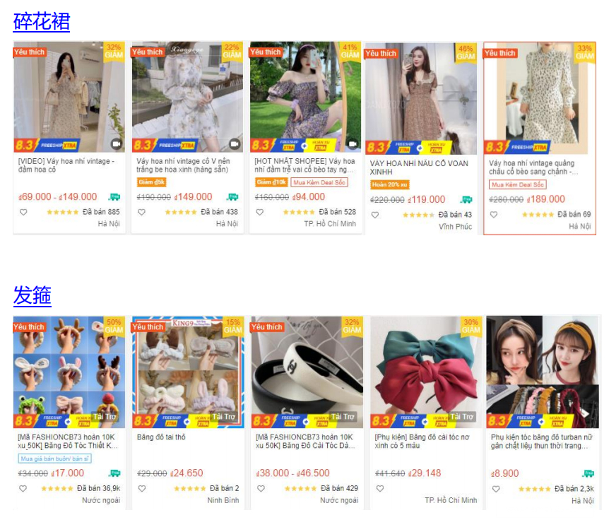 1. Fashion时尚品类: mieu.vn, theblues1994,chizhouse
