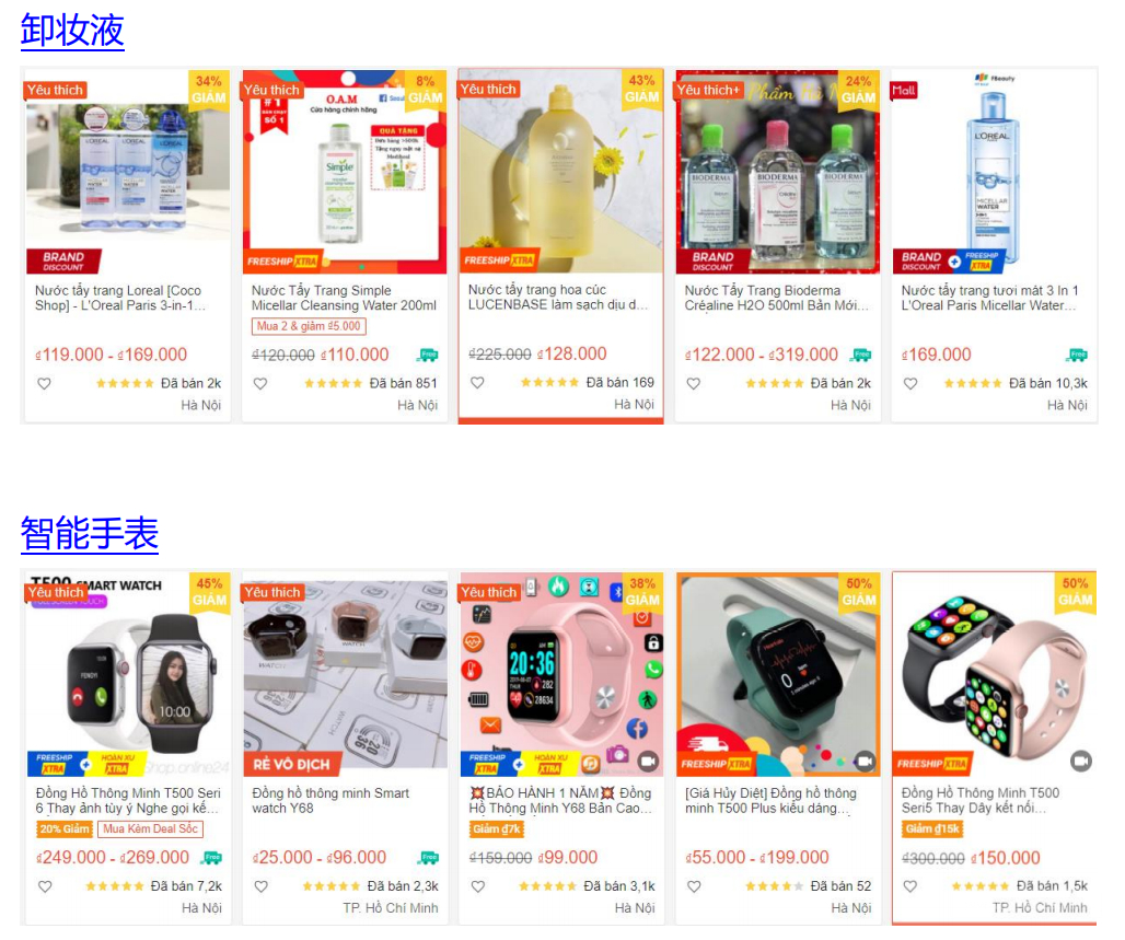 2. Health & Beauty美妆品类: hufuholic, rosiebeautie, lyncosmeticvn