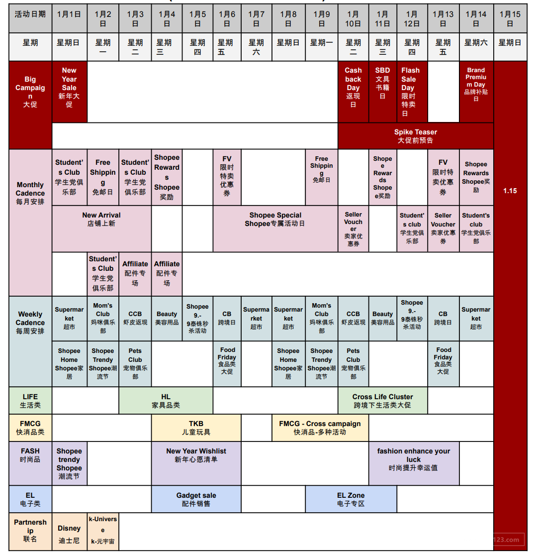 活动日历(2023年1月1日-1月15日)