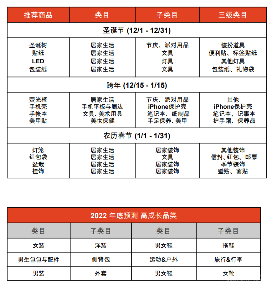 题的LED灯、派对装饰等等。此外,也陆续有卖家上架农历新年的吊饰、红包袋商品,并且数样商品已有几十笔下单量,鼓励卖家开始准备相关商品。