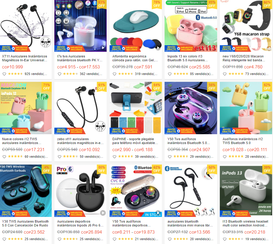 ● 热销: 无线蓝牙耳机、人体工学鼠标垫,彩色无线耳机