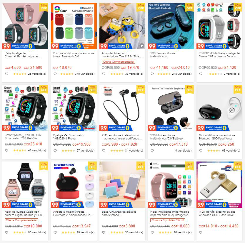 ◼ 热销价格段: [1,2) USD,热销品 LED Flashlight,Sunglasses