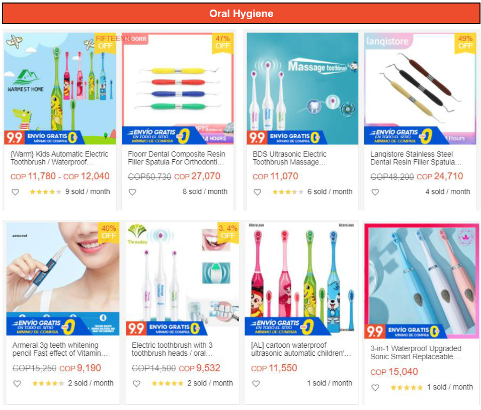 ◼ 潜力价格段: (2,3] USD, 热销品 Electric toothbrush