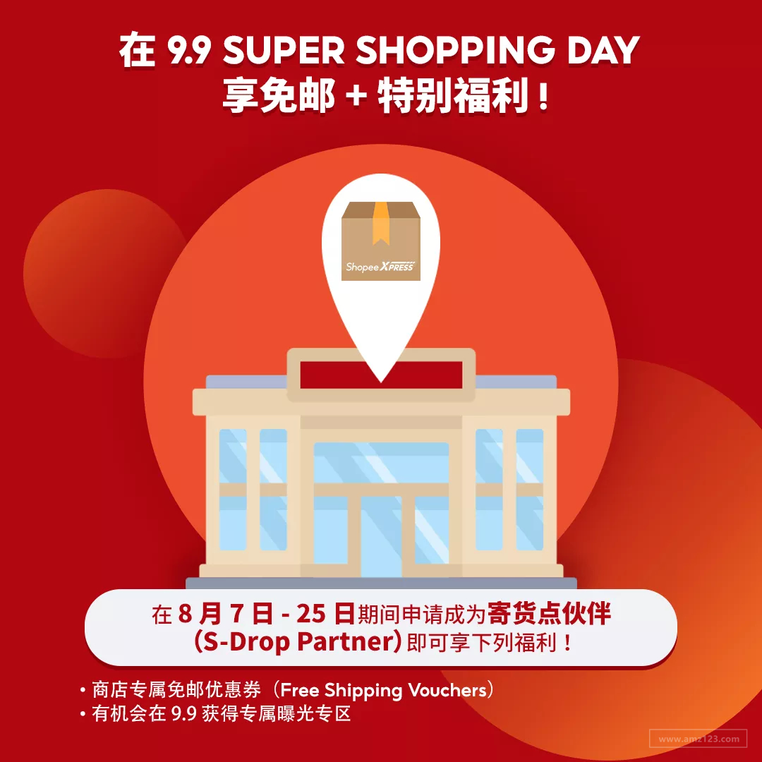 为鼓励大家踊跃报名成为 Shopee 寄货点伙伴(S-Drop Partner),8 月 7 日 - 25 日期间申请的卖家可在 9.9 Super Shopping Day 获得超值奖励!