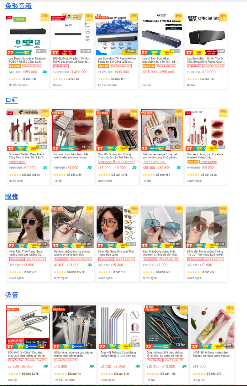 ● 音频类:Linkeetech Mini 5.0蓝牙音响,价格在79,000 VNĐ;PISEN无线耳机,价格在